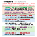 2026年1月の健康体操は下記日程で開催いたします。 ご参加よろしくお願いします。